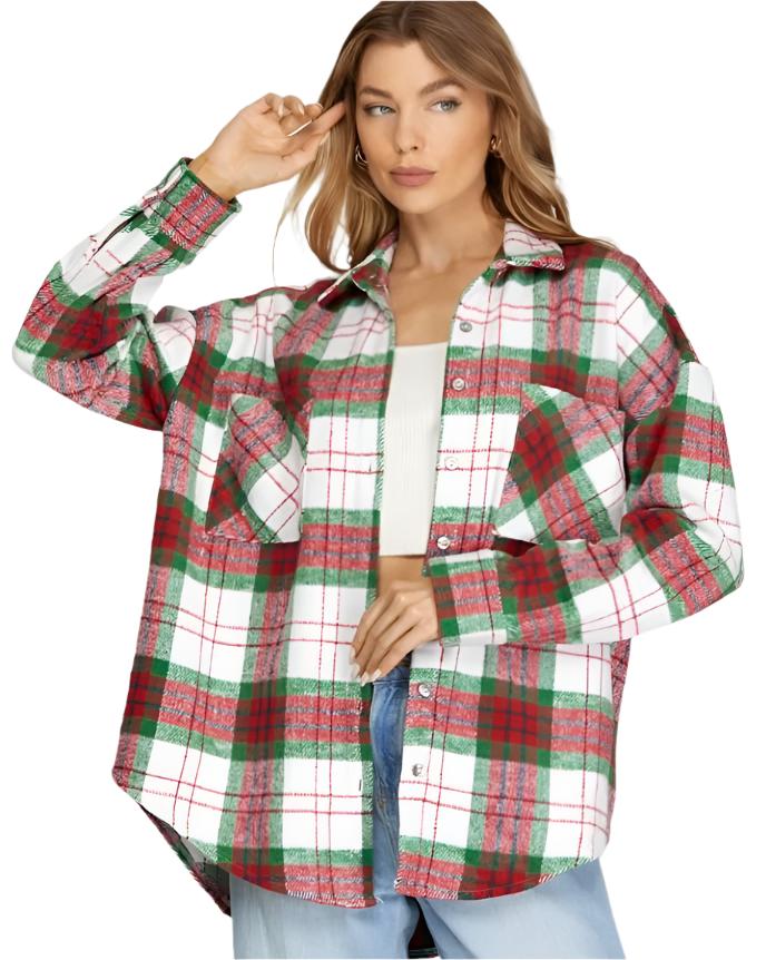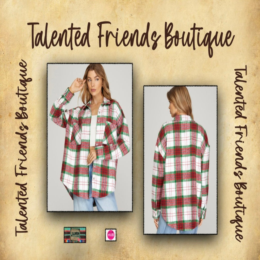 Stay right here and check out this red & green plaid shacket!