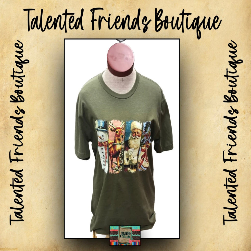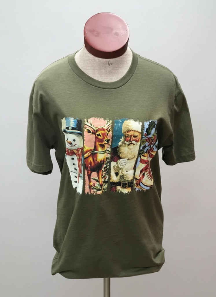 Retro Vintage Snowman, Reindeer, Santa, Skate