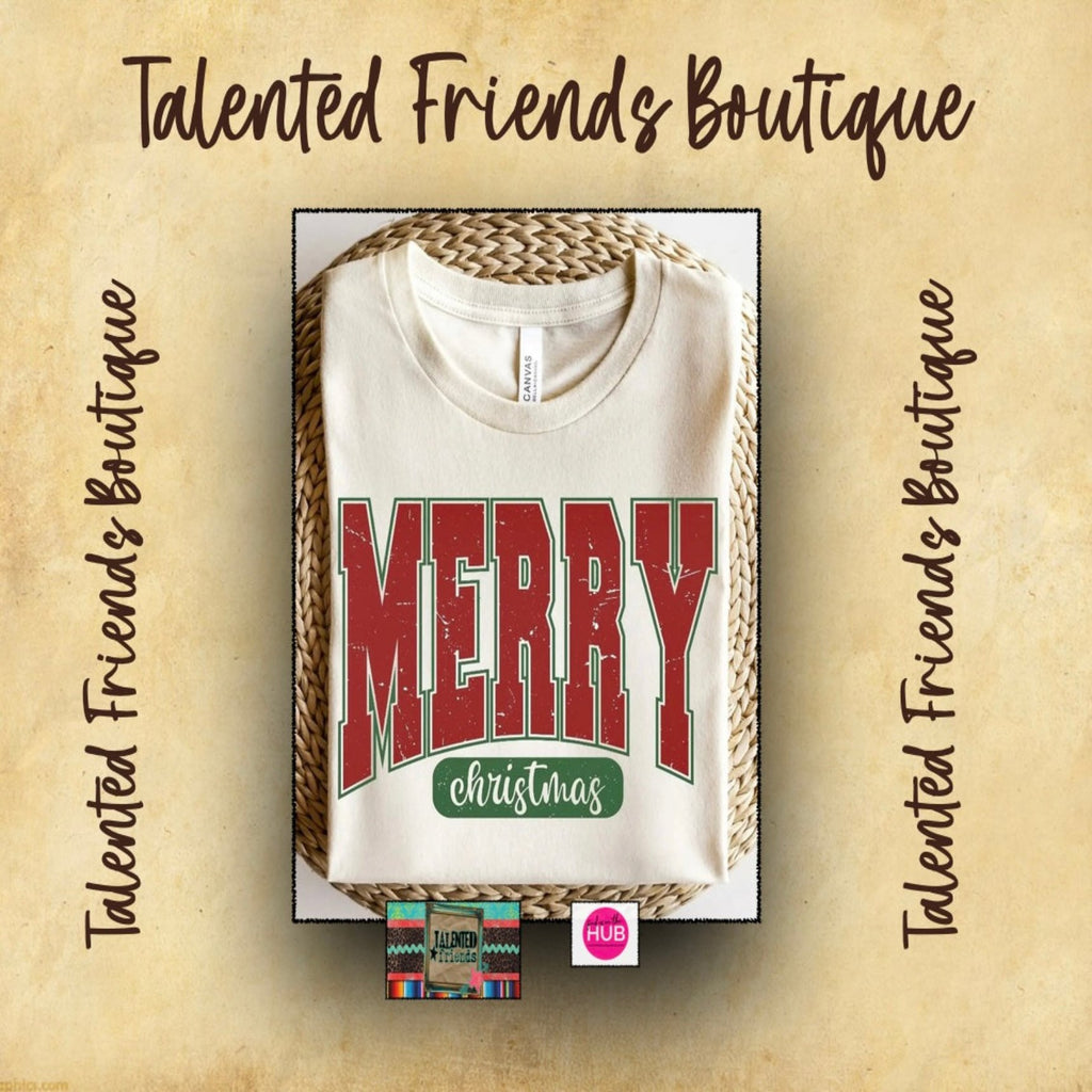 Vintage Merry Christmas T-shirt❊ Natural❊ Short Sleeve❊ Crewneck❊ Unisex Sizes: Small - 3XLarge